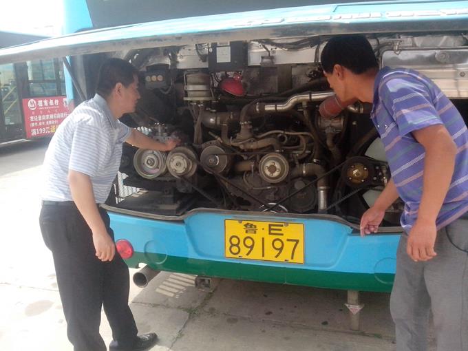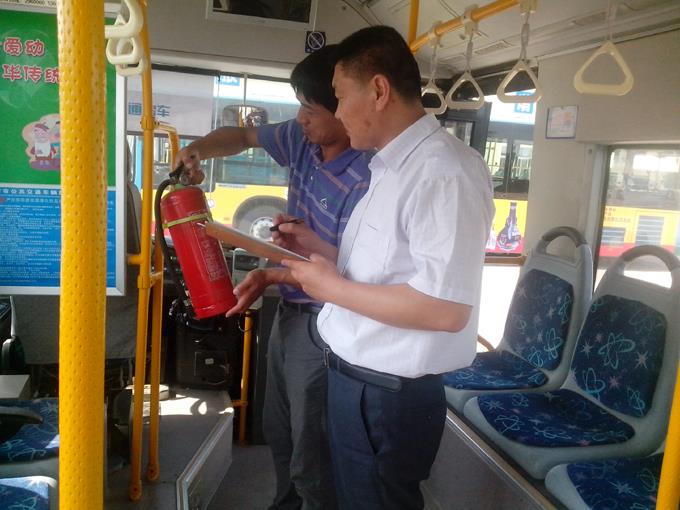 市公交公司汽車一隊對營運車輛進(jìn)行防火大檢查