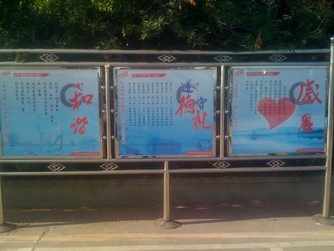 8月24日下午,市公交公司汽車三隊(duì)經(jīng)過多日熟思審處,精心構(gòu)思后制作的六幅展板安置在辦公樓前東側(cè)的不銹鋼宣傳櫥窗內(nèi)。