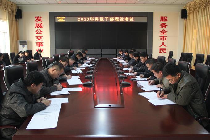 12月20日,按照市直機(jī)關(guān)工委、市學(xué)委辦公室的要求,市公交公司以開卷考試的形式,組織66名副科級以上干部進(jìn)行了干部理論考試??荚囉墒兄睓C(jī)關(guān)工委統(tǒng)一命題,重點(diǎn)檢查了對黨的十八屆三中全會精神、習(xí)總書記“中國夢”的構(gòu)建、全市工作布局及對當(dāng)前理論熱點(diǎn)問題的看法等。市公交公司66名副科級以上干部認(rèn)真答卷,順利完成考試。