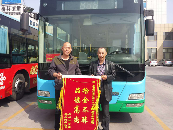 近日,市民李樹林先生帶著家人,將一面寫有“拾金不昧,品德高尚”的錦旗送到了市公交公司汽車六隊。