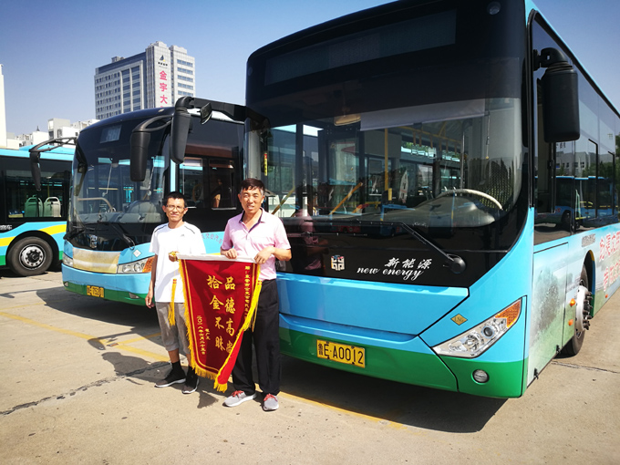 2018年6月29日上午,翟先生拿著一面寫有“品德高尚、拾金不昧”的錦旗來(lái)到市公交公司汽車一隊(duì),感謝3路駕駛員蓋曉龍師傅拾金不昧的高尚品德。