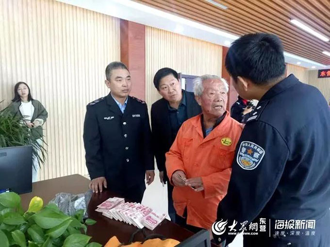 輾轉(zhuǎn)多方,車隊聯(lián)系到了失主,由于老人年紀(jì)較大,溝通不暢,車隊便將現(xiàn)金交給附近的勝利派出所?!袄先寺牭藉X在派出所這才安心。”