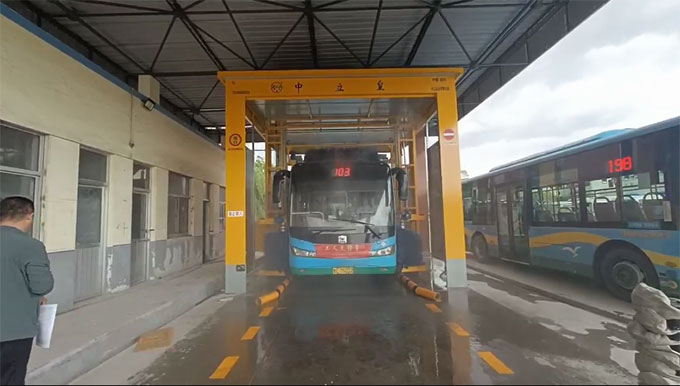 市公交公司通道式自動(dòng)洗車機(jī)投入使用