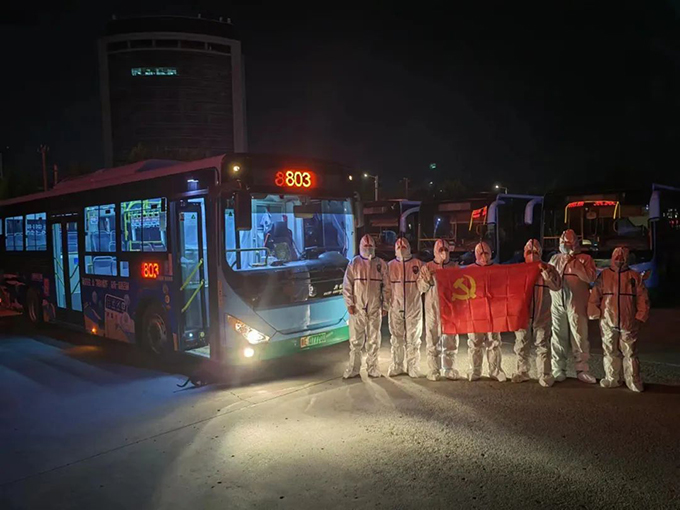 公司保修一廠副廠長(zhǎng)商同衛(wèi)凌晨2點(diǎn)半被電話驚醒,“根據(jù)防疫工作需要,抓緊組織咱們的人員凌晨3點(diǎn)前到公司就位,改裝轉(zhuǎn)運(yùn)車輛”,電話那頭傳來的是保修一廠負(fù)責(zé)人的聲音。商同衛(wèi)連忙從床上爬起來趕往公司,路上不停打電話通知其他同事,半個(gè)小時(shí)后保修一廠人員全部到位,他們與同樣接到任務(wù)的保修二廠的同事們一起,連夜完成了300臺(tái)公交車物理隔離改造,確保了車輛全部到達(dá)隔離轉(zhuǎn)運(yùn)條件。與此同時(shí),各車隊(duì)微信群也熱鬧起來。“疫情當(dāng)前,公司黨委號(hào)召連夜組建應(yīng)急轉(zhuǎn)運(yùn)隊(duì)伍,請(qǐng)大家根據(jù)個(gè)人家庭實(shí)際情況報(bào)名接龍”,這段話在公司各車隊(duì)的微信工作群一經(jīng)發(fā)出,就迅速得到了回應(yīng),也許是9月29日晚個(gè)別小區(qū)的封控讓大家提前感受到了疫情緊張的氣氛,此時(shí)雖已凌晨,但很多同志并未入睡?!瓣?duì)長(zhǎng),我第一個(gè)報(bào)名”“我是黨員我先上”“算我一個(gè)”,大家紛紛響應(yīng)公司黨委號(hào)召,踴躍報(bào)名。很快,由東、西城各車隊(duì)300名駕駛員和300臺(tái)完成物理隔離改裝的公交車組成的應(yīng)急轉(zhuǎn)運(yùn)隊(duì)伍9月30日早6時(shí)前就組建并按區(qū)域集結(jié)到位。