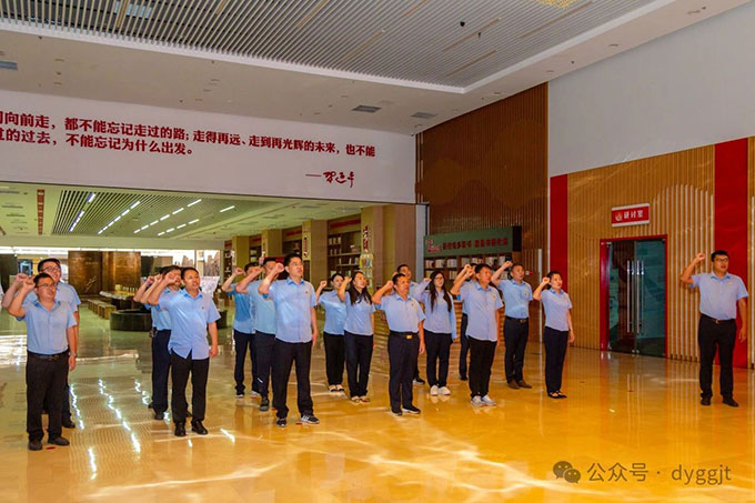 隨后大家參觀了“崢嶸歲月 光輝歷程”——中共東營市地方組織建立100周年圖片展,進(jìn)一步了解東營市地方黨組織發(fā)展奮斗歷程。最后,全體黨員在黃河分館宣誓大廳面對黨旗莊嚴(yán)宣誓,重溫入黨誓詞。