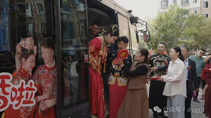 新娘老家的親戚朋友大多是第一次到東營來,他們通過這場(chǎng)婚禮感受到了東營人民的熱情好客,“這里民風(fēng)淳樸,結(jié)婚也是熱熱鬧鬧,孩子嫁到這里我們很放心?!蹦锛胰藢?duì)于東營的結(jié)婚習(xí)俗表示非常欣賞。新娘的好朋友們也有很多遠(yuǎn)道而來的,“我們也是第一次在現(xiàn)實(shí)生活中見到用公交車當(dāng)婚車的這種方式,太有趣了?!彼麄兗娂娕南乱曨l,要推廣這種節(jié)約而有意義的結(jié)婚方式,“公交車車廂空間大、坐的人又多,還可以進(jìn)行個(gè)性化布置,同時(shí)能讓家人朋友共享這段浪漫旅途的喜悅,共同見證這一幸福瞬間,更有儀式感與氛圍感。”