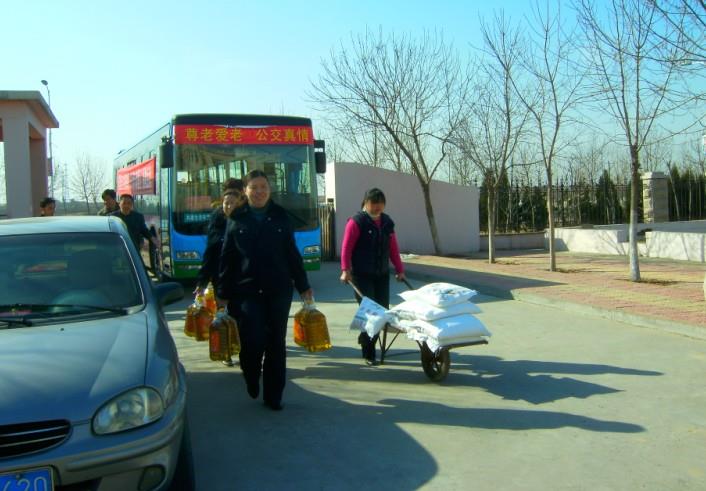 2011年3月8日,在國際勞動婦女節(jié)當天,市公交公司汽車三隊112路車組駕駛員丁文美、馬云麗、王瑞華等三人代表15位全體112路駕駛員用在公司文明服務(wù)示范線路評比活動中得來的2000元獎金,購買了油、米、面等慰問品對龍居鎮(zhèn)敬老院的老人們進行了慰問并送去了祝福,得到了老人們的熱烈歡迎。駕駛員代表丁文美表示:尊老愛幼是中華民族的傳統(tǒng)美德。我們年輕人是在老一輩人打下的基礎(chǔ)上才能過上現(xiàn)在的好日子,所以我們不能忘記各位老人們。能用這樣的方式過節(jié),我們都覺得非常有意義。