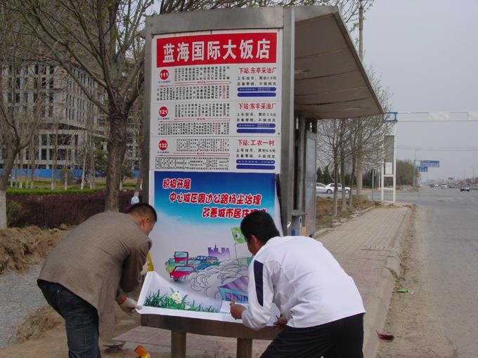 市公交公司廣告部對市區(qū)500余個公交站牌增設(shè)了創(chuàng)城公益廣告畫面