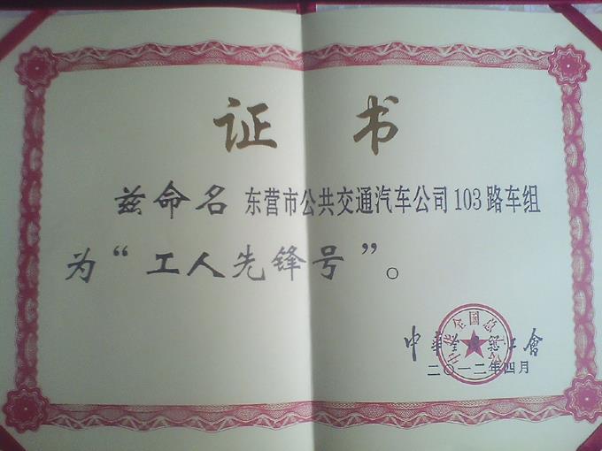 近年來,市公交公司103路車組人員把優(yōu)質(zhì)服務(wù)作為積極奉獻的目標,視乘客為親人,愛崗敬業(yè),無私奉獻,出色地完成了各項營運生產(chǎn)任務(wù),得到了廣大乘客的一致好評,被親切地稱之為“滿意車”、“放心車”、“安全車”。并先后獲得山東省城建行業(yè)“文明服務(wù)標兵”、東營市五一勞動獎?wù)?、東營市“十佳服務(wù)標兵”、“市級工人先鋒號”、市文明委授予的“全市十佳文明示范窗口”、省總工會授予的“山東省工人先鋒號”等多項榮譽稱號,展示了公交駕駛員良好的精神風貌,營造了和諧文明的社會氛圍。