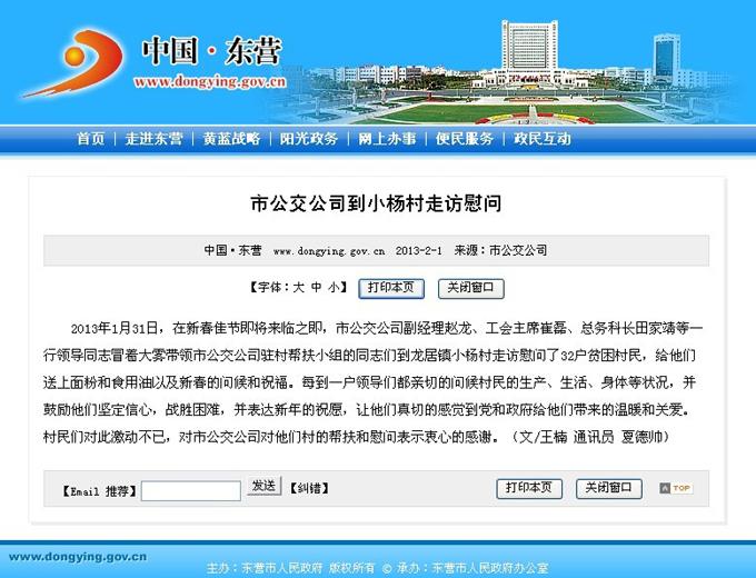 2013年2月1日東營市政府網(wǎng)站報道