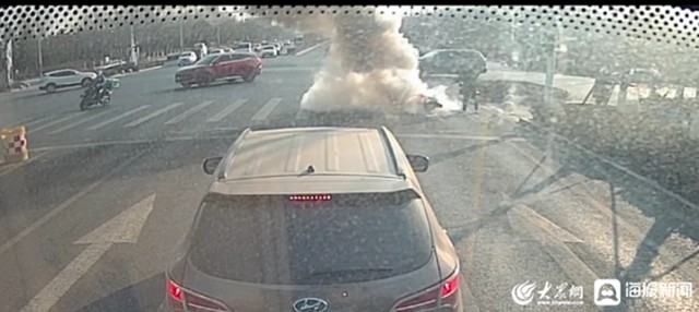 眼看火苗隨風(fēng)越燒越旺,危急時刻,17路駕駛員張曉良駕駛著魯E97102公交車運行途經(jīng)此處等紅燈,遠遠地看到前方冒著火光和滾滾濃煙的電動車,他拿起車載滅火器沖了過去,“當(dāng)時路上的行人和車輛較多,情況十分的危急。”張曉良回憶說,他沒顧上仔細查看,把一瓶滅火器噴完,便抓緊回到車上繼續(xù)運行。